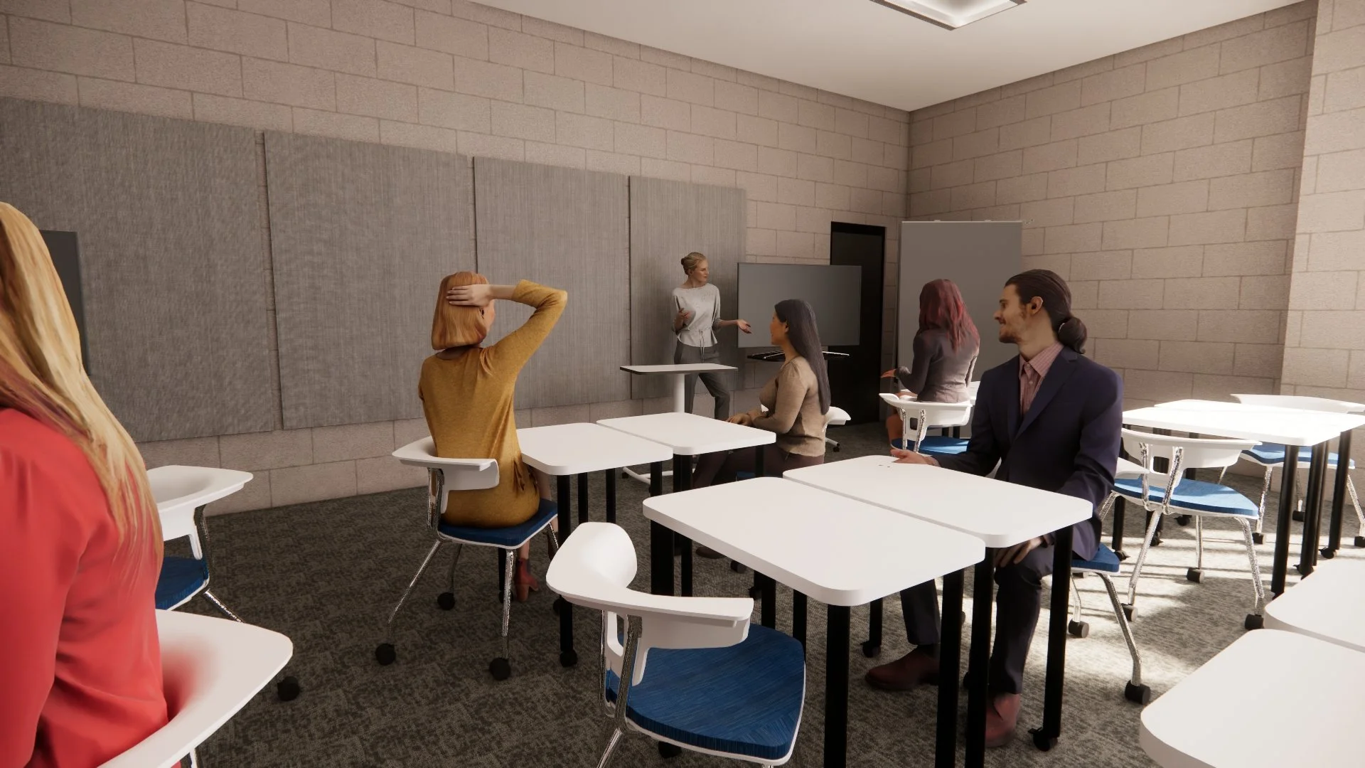 In a team of four students, we researched the physical, cognitive, and emotional needs of users in a higher‑education studio space. Together, we analyzed the existing room and specified furniture, materials, and acoustic strategies, producing a full set of specifications, a budget, and a material audit. My role focused on building the project in Revit and creating the final renderings for our proposal.
